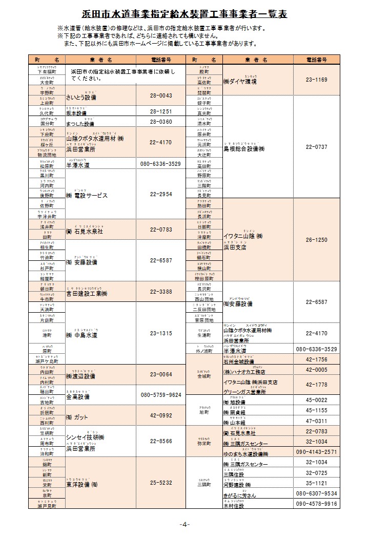 なお、浜田市における指定給水装置工事事業者の全登録事業者はこちらをご覧ください。