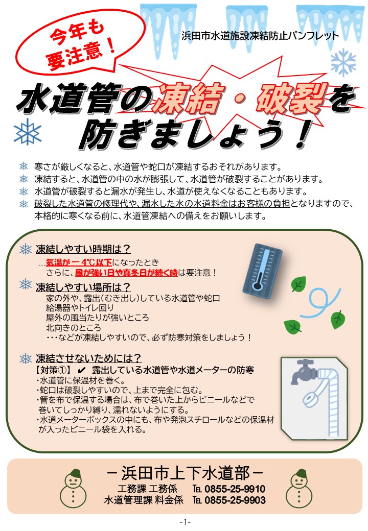 水道施設凍結防止パンフレットも作成しましたのでご覧ください。下の「ダウンロード」からデータの取得もできます。