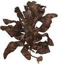 ワカメは1年生藻です。 ワカメは生長すると茎の左右にひだができ始め、これが大きくなると、いわゆる「芽カブ」になります。芽カブはワカメの子どもをつくる部分で、春から初夏に成熟し、そこからとても小さい遊走子が、たくさん海中に泳ぎだして岩などに付着し、糸状の固まり(配偶体)になります。そして、秋になると配偶体から発芽して、ワカメに成長します。 ワカメは、ビタミン類、ミネラル、食物繊維が豊富であり、栄養価に非常に優れた海藻です。 |