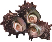 アワビは殻が一枚からなる巻き貝で、巻き貝の中でも最も美味な高級食材です。島根県には、メガイアワビ、クロアワビ、マダカアワビが生息しています。秋から冬にかけて産卵するアワビは夏が旬であり、刺身はもちろん、酒蒸し、バター焼きなどにして食べます。 アワビは殻の大きさが10cm以上の漁獲サイズになるのに4年もかかります。 |