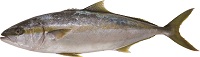 ヒラマサは、ブリに酷似しながらも、より温暖な海域を好む魚で、その旬は夏にあたります。成長すると全長約1.5m、体重50kgに達することもありますが、最もおいしいとされるのは2〜3kg程度の脂がほどよくのった個体で、この大きさが刺身や寿司ネタとしてよく使われます。 ブリよりやや細身で頭が小さく、体の黄色い線が真ちゅう色に近い濃い黄色であるのが特徴です。 |