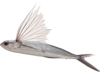 華やかな夏を告げる魚として馴染みが深いこと、島根県の生産量が全国屈指であること、空中を飛ぶ様子が飛躍・跳躍のイメージがあることなどの理由で、島根県の魚に選定されています。 トビウオの身は脂肪やエキス成分の少ないやや淡白な味で、刺身、たたき、塩焼き、つみれ汁、薩摩揚げなどにして食べられます。また、卵巣も珍味で、煮付けなどにされます。加工品としては練製品、干物、くん製品などがあります。 |
