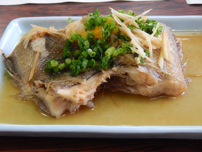 【材料】(6人分) ・カレイ………6尾 ・酒………400cc ・水………400cc ・醤油…120cc ・みりん…………240cc ・生姜…60g ・梅干し……1個 ・柚子の絞り汁……小1 柚子の皮……………少々 ・青ネギ………少々