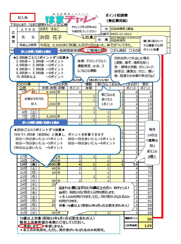 ・記録票の個人情報は厳守いたします。また、浜田市の健康づくり情報として活用させていただきます。