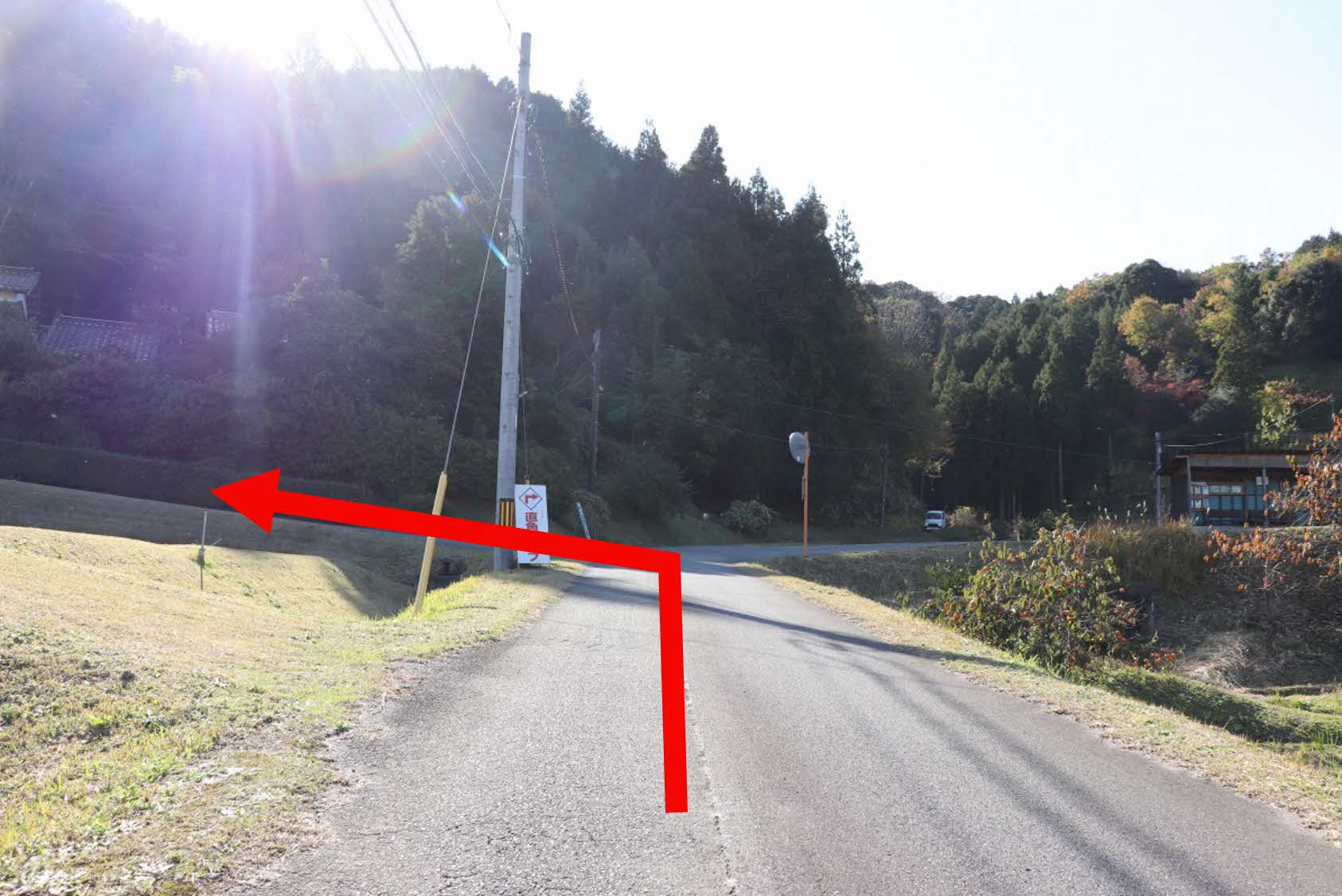 休憩所・バイオトイレ前の十字路を左折します。地図(7)