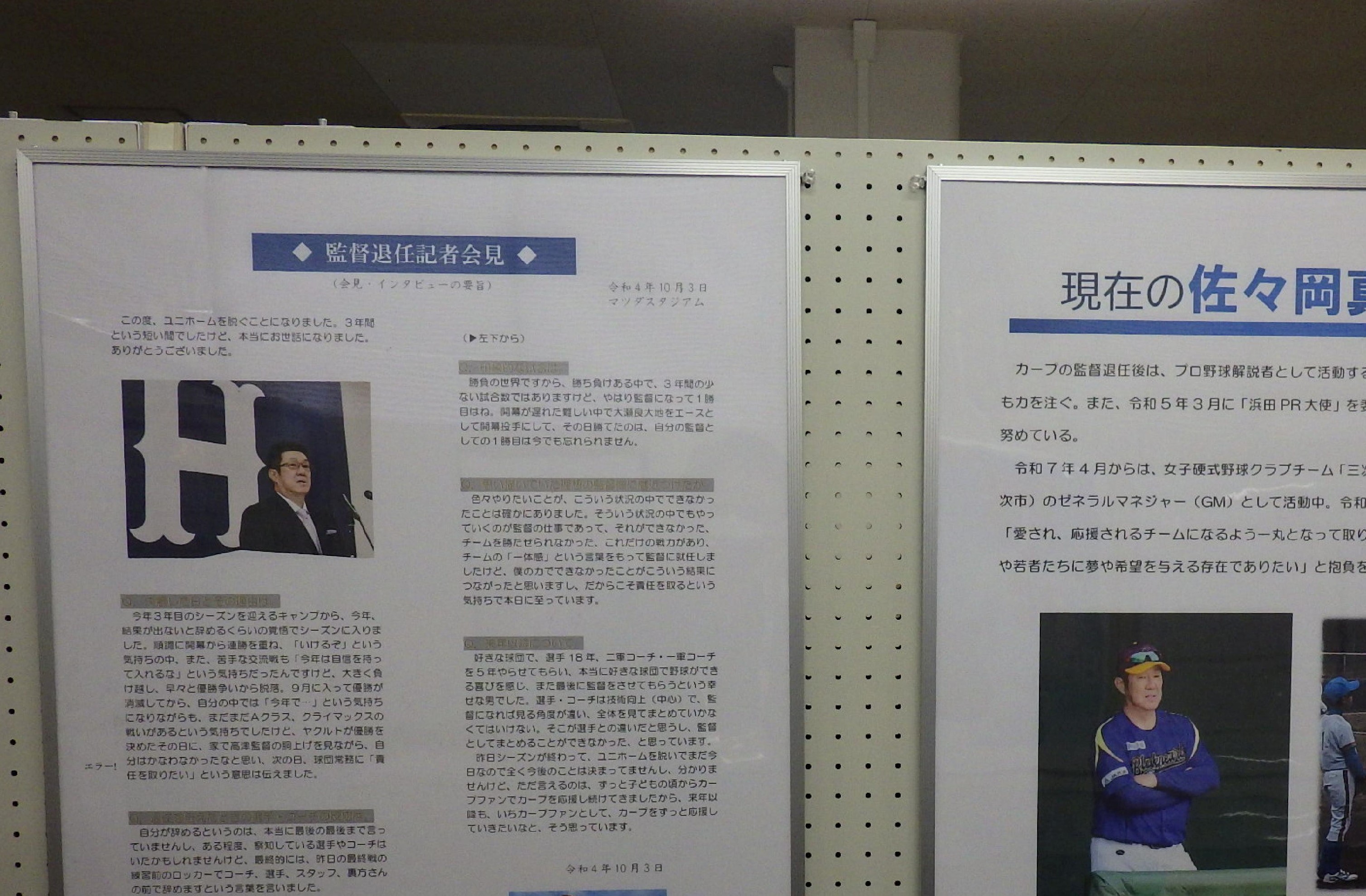 活躍した佐々岡真司さんの思い出深い貴重な資料を展示し、功績などを紹介しています。