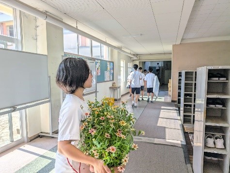 ↑益田翔陽高校で種から育てていただきました。 ↑浜田高校の生徒さんに水やりをしていただいています。