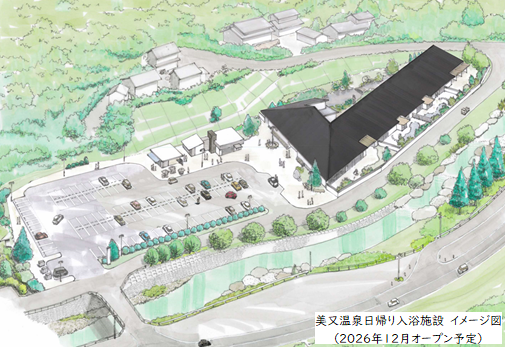 美又温泉は無臭かつ無色透明で、高いアルカリ性(ph9.9)と高濃度のメタケイ酸(81.9ppm)の相乗効果による泉質が特徴で、SNSでは「とろっとろの湯」「まるで化粧水のよう」などの口コミもあり、「美容に関心のある方」や「お肌に悩みのある方」に人気の温泉です。 これは、大学教授による学術的調査と温泉療法専門医による医学的調査の2つのエビデンスを有しており、肌再生効果に優れた全国屈指の「美肌の湯」であることが実証されています。 美又温泉には、2つの日帰り入浴施設と5つの旅館・ホテルがあり、2026年12月頃には浜田市が進める「美肌観光」の拠点施設として新たな日帰り入浴施設のオープンが予定されています。