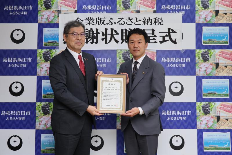 本市の地方創生の取り組みに貴重なご支援をいただいたことに対し、令和7年12月12日に感謝状を贈呈しました。