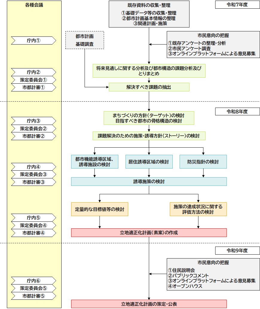 令和7年度~令和9年度で計画の検討を進め、令和9年度末までの策定・公表を目指しています。
