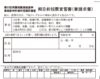 ※投票日当日に投票される方は、宣誓書の記入は不要です。