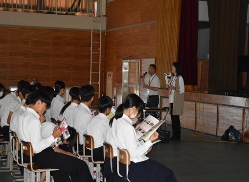 6月15日、16日に進路説明会を行いました。2日間でハローワーク浜田やビューティーカレッジ、各高等学校併せて15の学校等に来校いただきました。働く意義、各学校の特色など、様々なお話をしていただきました。本年度は初日のみ2年生も参加しました。3年生は、進路選択に向けて、参考になるたくさんの話を聞くよい機会になりました。 それぞれの学校の先生たちは、先の見えない社会の中で生き抜くための力をつけていくことの大切さ、将来を自ら切り開いていくために必要な力をつけることが重要であり、高等学校でもしっかり支援していくと話されました。