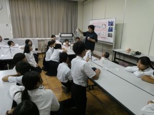 日本の災害について、防災体験学習の意義について説明を聴きました。