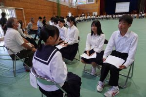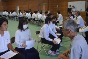 時間がたつのがあっという間に感じ「まだまだ話したい」という声も聞こえてきました。休憩時間も地域の方と中学生が会話をする場面も多くみられました。