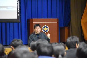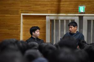 今回は講師に大湾 昇さんをお招きし「あることをないことにしない」という演題で講演をしていただきました。「人権」「差別」に視点をあて、大変わかりやすく、熱いお話をしていただき、生徒、職員とも自分たちの生活や取組を振るとても有意義な時間となりました。
