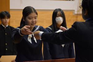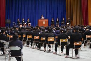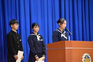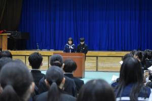あわせて、生徒会長と副会長の役員任命と表彰式も実施しました。役員任命式では新生徒会会長と副会長から決意表明もありました。