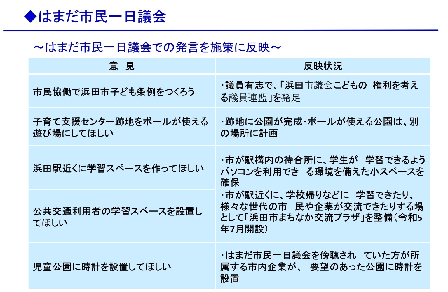 ~主権者教育につながる子どもの意見の施策反映(地方議会サミット資料概要版)~
