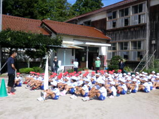 2時間目は、第1回目の全校練習です。運動会に向けて、集団行動の指導に力が入ります。集合よし。 |