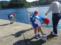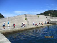 見事な秋晴れの下 松原湾で合同学習(つり体験)をしました。