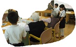 それぞれの学年で、近隣の福祉施設に訪問して、お年寄りの方々と