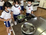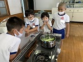 収穫した野菜を洗って茹でて、おいしくいただきました!