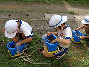 育った子葉を,ホウセンカは各自の鉢に,ピーマンとオクラは畑に植え替えました。