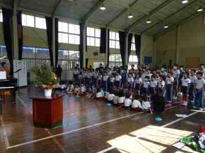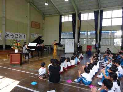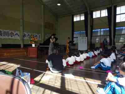 最後に美川小の今月の歌「いつだって」や、校歌を演奏にあわせて歌いました。