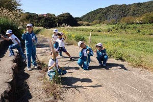 1年生は、生活科の学習「あきをさがそう」の学習で、学校の周りのいろいろな地域に出かけて、秋探検をしています。