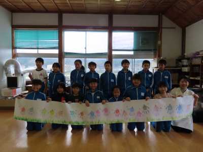 校舎移転に向け、思い出を残すため、手形アートに挑戦しました。