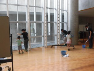 校舎内では,窓ふきや教室のワックスがけを行いました。