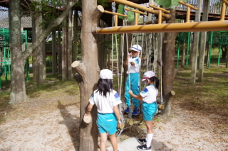 お弁当のあとは、遊具で遊んで楽しみました。長い滑り台などたくさんの遊具で遊びました。他の学校からもたくさんの子どもたちが来ていましたが譲り合って仲良く遊ぶことができました。さすがですね。どんぐりを拾う子どももいました。