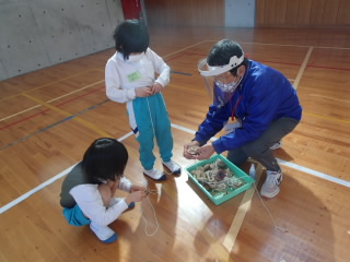 昔遊びの会がありました。1年生が地域のボランティアの方々にいろいろな遊びを教えていただき、一緒に楽しみました。