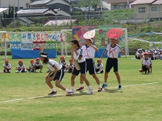 幼児の「旗取り競走」です。旗は1年生が作りました。 |