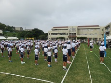 海洋少年団の手旗信号の合図で入場行進が始まりました。 |