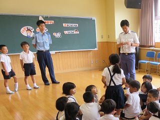 もうすぐ夏休みです。安全で安心して楽しい毎日を過ごすことができるように、1・2年生は、不審な人から声を掛けられたり、連れ去られそうになったりした時の対応教室を行いました。いかはいかない のはのらない おはおおごえをだす すはすぐにげる しはしらせる・・・これが合言葉です。