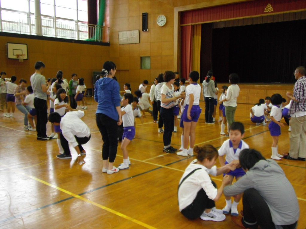 今回は,三隅B&G海洋センターの方を講師に,親子で体を動かす活動を行いました。
