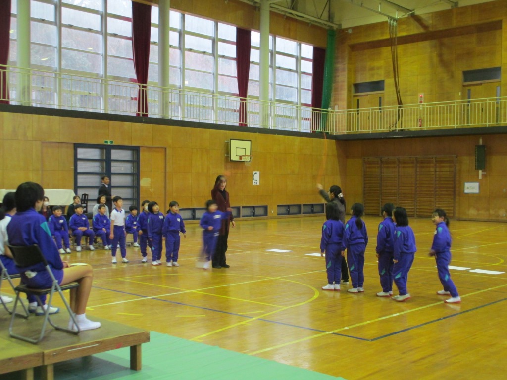 各学年からは,まず1・2年生対6年生でなわとび対決をしました。1・2年生が勝ちました。